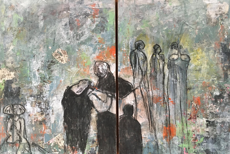 Kunst creëren betekent voor mij laten zien hoe ik in het leven sta. Vanuit mijn opvoeding naar volwassen worden hoe ik het leven ervaar in de grote wereld en dichtbij. In mijn kunst werkte ik voorheen met verschillende thema´s en materialen: mixed media, abstract, figuratief en art journals. De laatste jaren steeds meer in portretten met houtskool en pastels. De keuze om hiermee te werken is dat ik met de inhoud goed kan laten zien wie ik ben. Met alle emoties en uitdagingen van dien. Met name met oliepastel kan ik letterlijk met mijn handen in de kleuren ´doorwerken´ om in verbinding met het kunstwerk te geraken. In een beperkt kleurenpalet en met toon om gelaagdheid en diepte te creëren. Voor mijn afstudeeropdracht aan de Vrije Academie ’t Pad heb ik dit verder onderzocht aan de hand van mijn kinderfoto’s uit familiealbums. Niet om realistisch perfecte portretten te verwezenlijken Wel persoonlijk en eigen. Met mijn gemoed en intuïtie als essentiële ingrediënten. Kwetsbaarheid en eenzaamheid zijn terugkerende thema’s. De imperfectie is als een draad hiermee verbonden als schoonheid en nuance.