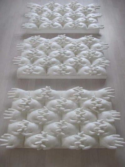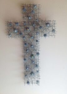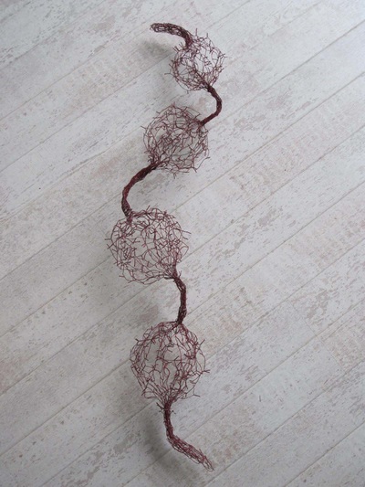 Werkstukken gemaakt van uiteenlopende materialen, zoals binnenbanden, kippengaas,
