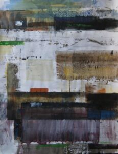 Binnen een serie diep ik bijvoorbeeld het thema ‘lanschap’ uit zoals in de serie ‘Restart’ en ‘Zaans landschap’. Daarnaast teken, schilder en construeer ik ideeën in de series ‘Notitie’ en ‘3d’ om te experimenteren met beeldtaal.